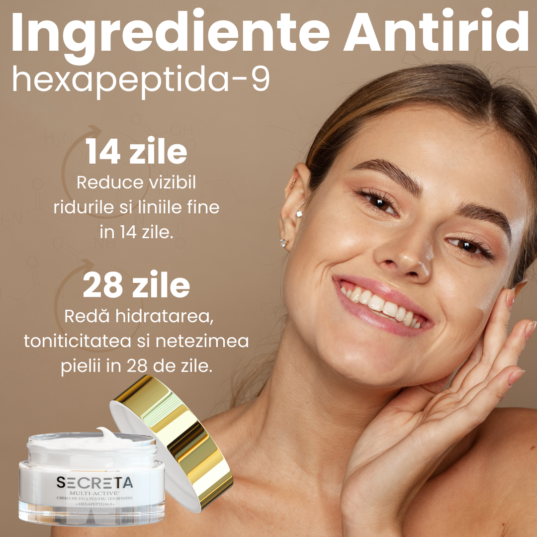Puterea științei întâlnește luxul în formula Secreta Multi-Active+, ce conține Hexapeptida-9, un ingredient revoluționar pentru o piele netedă și întinerită.