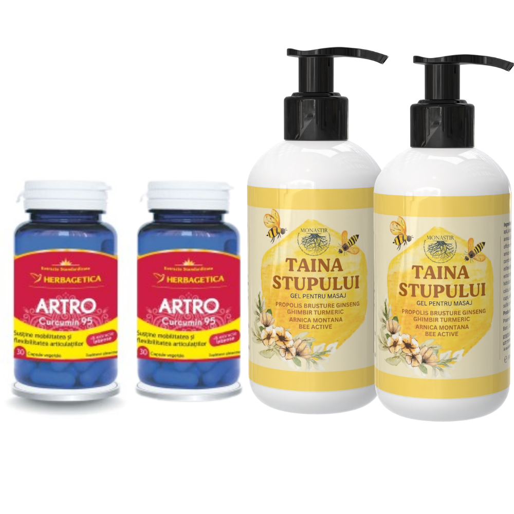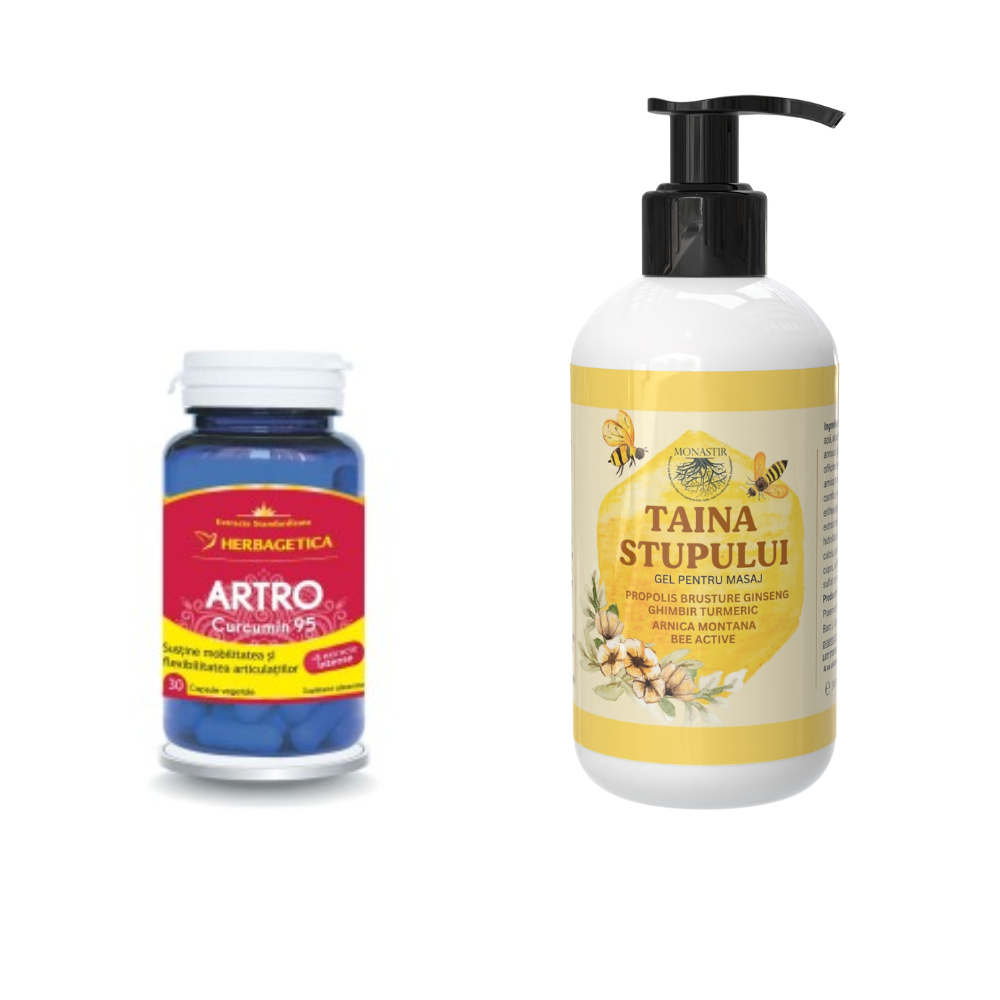 Urzică (Urtica dioica) scade inflamația asociată tuturor tipurilor de artrită și gută, având și efect analgezic. Datorită conținutului bogat de calciu, magneziu, fier și fosfor, extractul de Urzică asigură mineralizarea osoasă, contribuind activ în procesul de osteogeneză. Boswellia serrata (Arborele de tamâie) - Boswellia este un arbore ce se găseşte în India, Nordul Africii, dar şi în Orientul Mijlociu. Extractul de Boswellia este benefic pentru cartilaje şi articulaţii, redându-le mobilitatea şi diminuând sensibilitatea dureroasă. Studiu: Phytomedicine. 2003 Jan;10(1):3-7. Acest studiu a fost efectuat pe 30 de pacienţi cu dureri de genunchi. Aceştia au primit extract de Boswellia timp de 8 săptămâni. După această perioadă au raportat o reducere semnificativă, aproape completă a durerii, creșterea flexibilității articulațiilor și a flexiei genunchiului. Gheara-Diavolului (Harpagophytum procumbens) - Extractul de Gheara-diavolului este recunoscut pentru acţiunea puternică de reducere a durerii de la nivelul oaselor și articulațiilor (*13) printr-un răspuns specific de mobilizare a resurselor naturale pe care le are organismul. Sub formă de extract, are o acţiune mai puternică faţă de administrarea pulberii simple, datorită concentraţiilor mari de substanţe active. Curcumin95 C3 complex (Curcuma longa) - Prin proprietățiile sale antiinflamatorii (*14) acest extract este foarte eficient în combaterea artritei reumatoide si a bolilor reumatismale. Conform studiilor realizate, cu ajutorul curcurminei tratamentul este mai eficient şi fără efecte secundare, ceea ce recomandă Curcumin95 C3 complex ca o alternativă sănătoasă şi eficace la medicamentele antireumatice de sinteză. Pacienții cărora le-a fost administrat Curcumin95 C3 complex au declarat că dimineața nu își mai simțeau articulațiile amorțite sau umflate, iar mersul pe jos nu mai era o problemă.